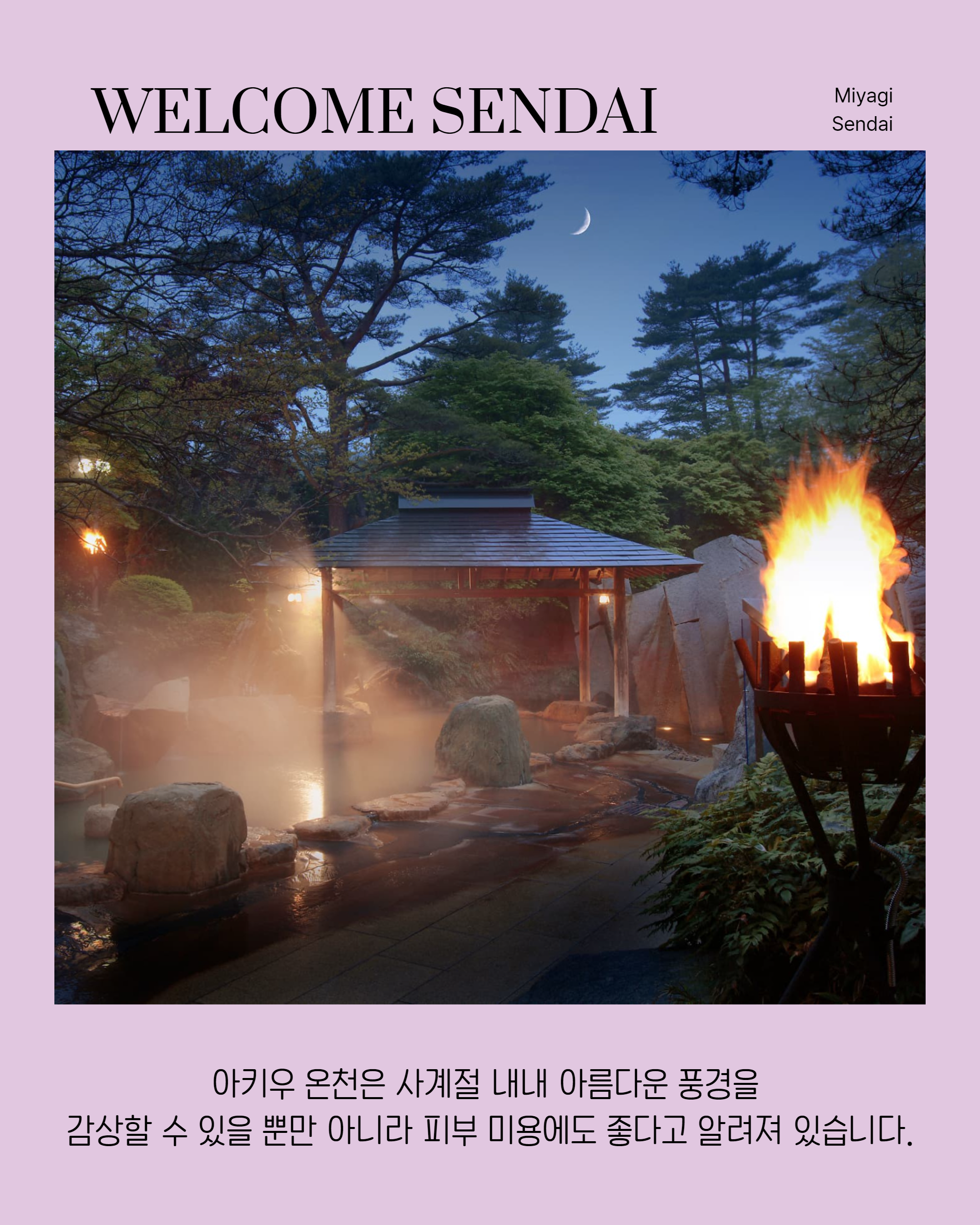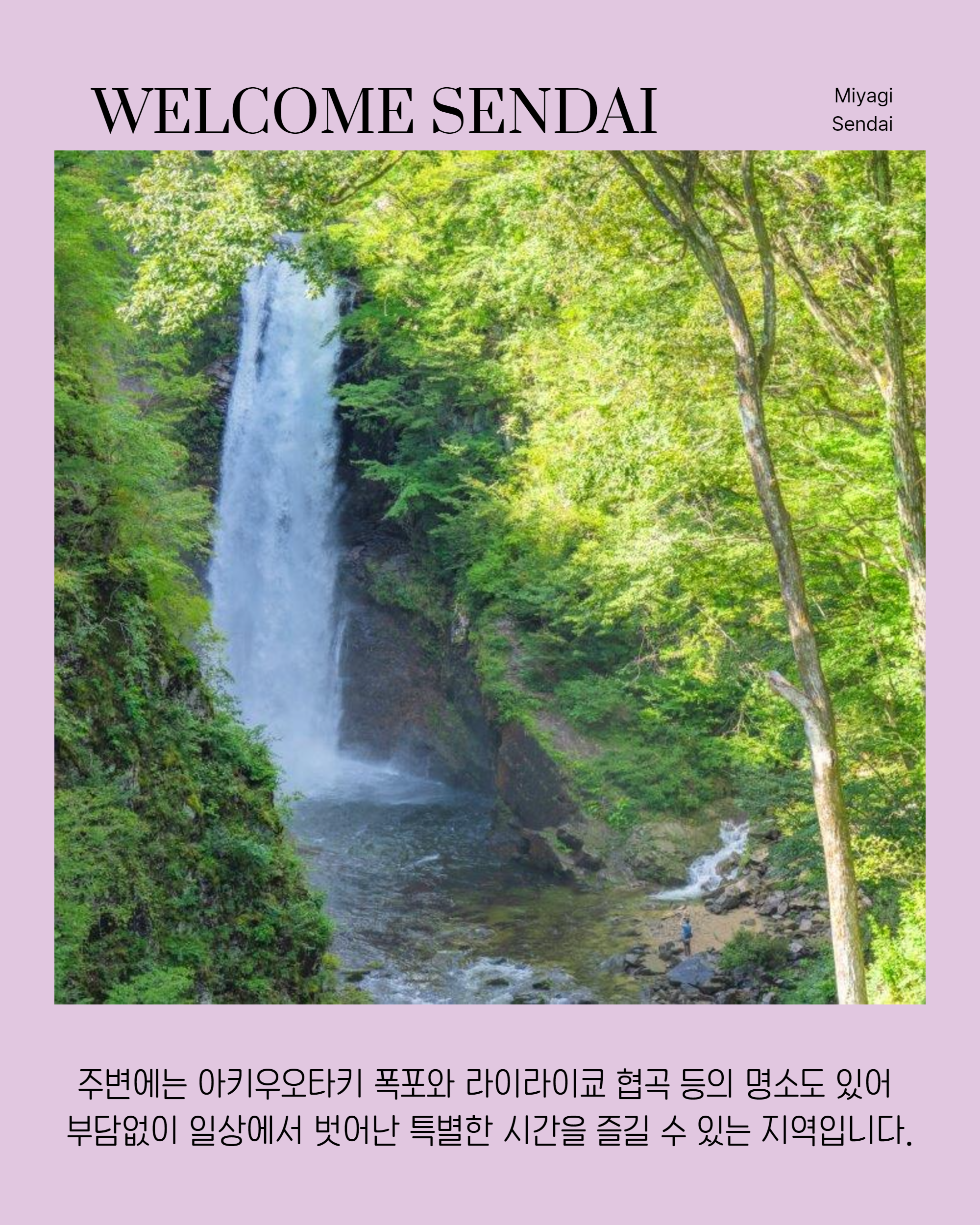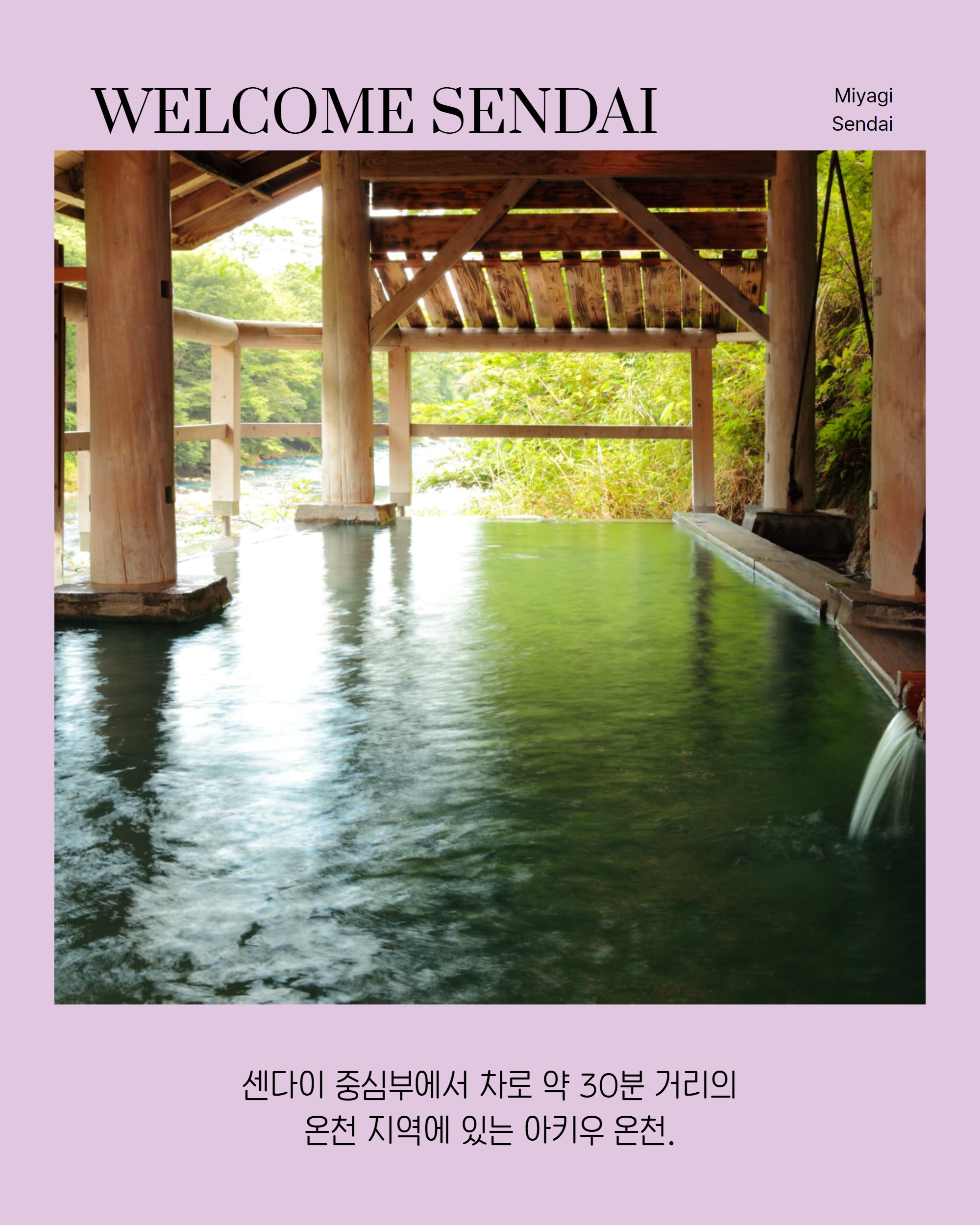 秋保温泉は仙台中心部から車で約30分ほどで行ける温泉地であり、四季折々の美しい風景に加え、美肌にもよいとされています。周辺には秋保大滝や磊々峡などのスポットもあり、気軽に非日常を体験できるエリアです。