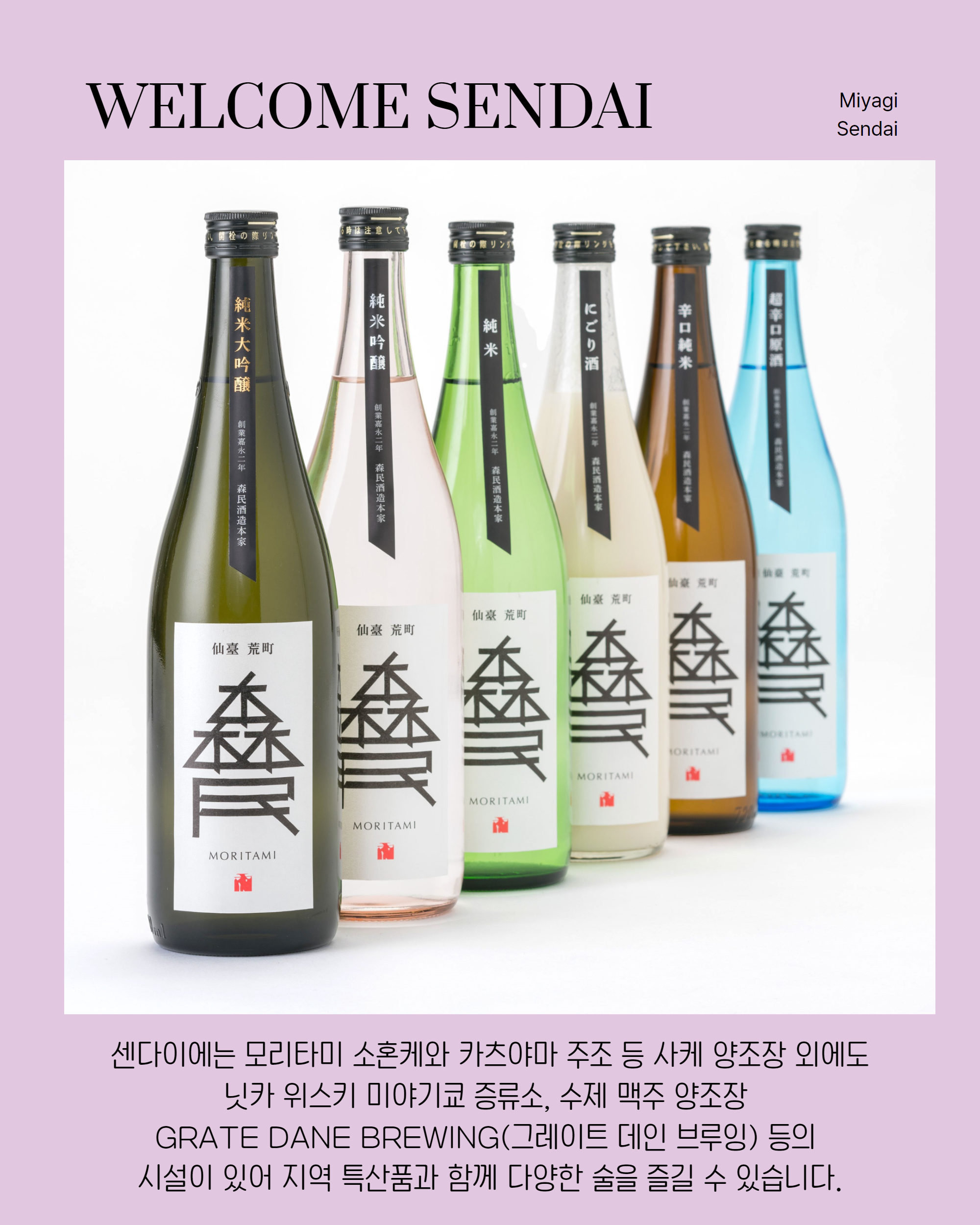 仙台には森民総本家や勝山酒造の酒蔵の他、ニッカウヰスキーの宮城峡蒸溜所、クラフトビール醸造所GRATE DANE BREWING(グレート デーン ブリューイング)等の施設があり、地域の特産品と共にさまざまなお酒を楽しめます。