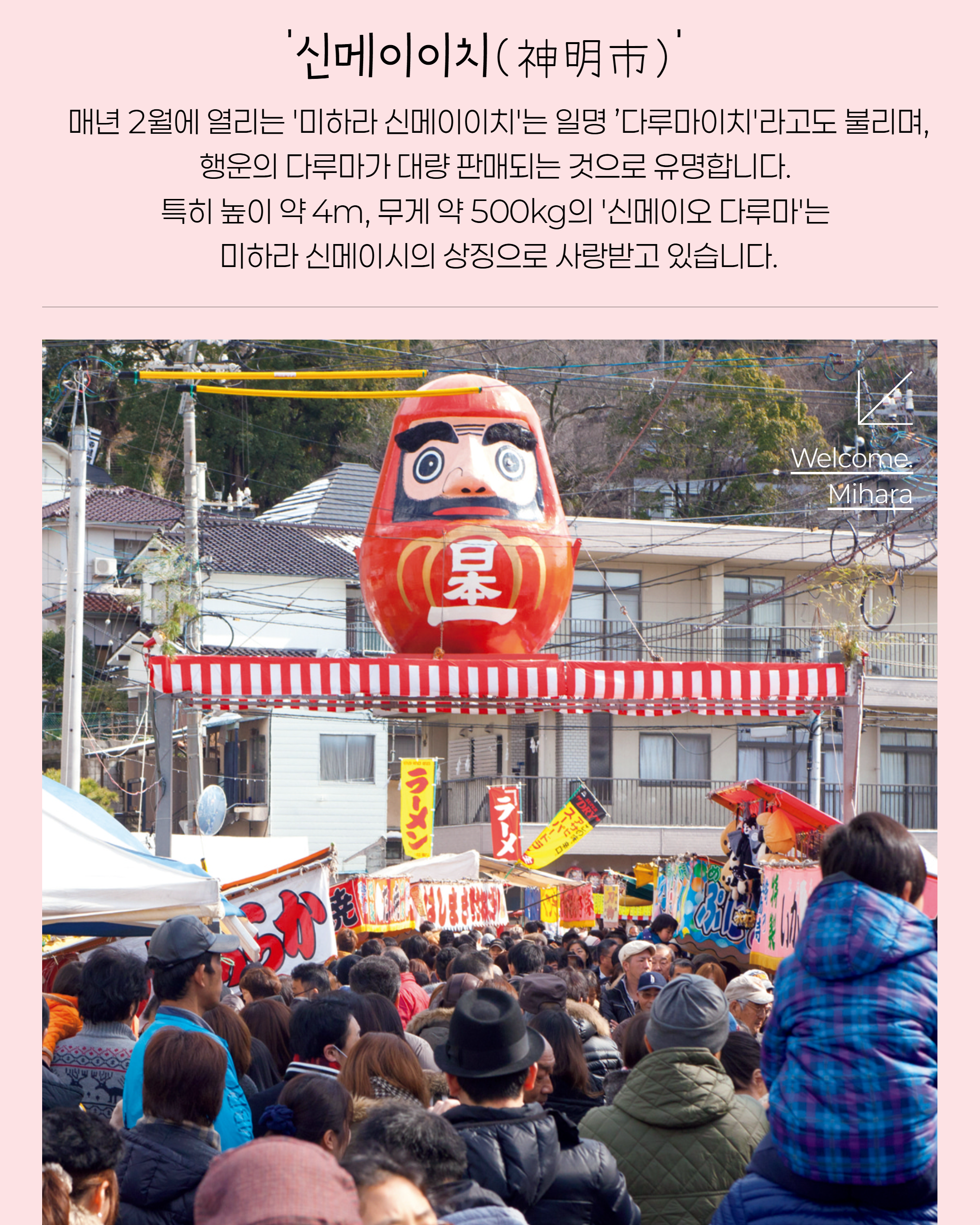 三原市の民芸品「みはらだるま」は昔から地元のお祭り「神明市」で家族の数だけだるまを買い求め、その背にひとりひとりの名を書き入れることで、一家円満や開運を願ったといわれています。三原市では、100年以上前からだるまが作られており、だるまのまちとして有名です。また、地元の職人から指導を受けながら、自分だけのだるまの面相描きを体験することができます。 ●参考URL https://www.mihara-kankou.com/sightseeing/3242