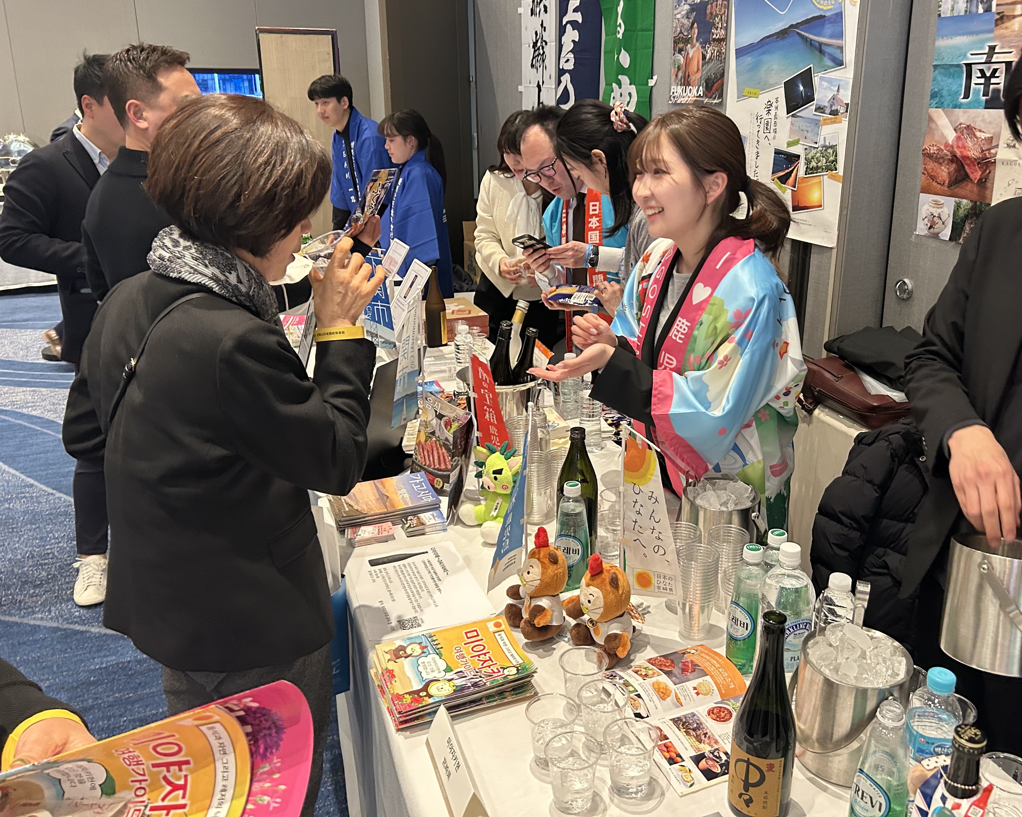 ソウル会場には、鳥取県・島根県・鹿児島県から派遣されている職員が参加し、各地域の観光PRをはじめ、日本酒や焼酎をふるまいました。当事務所のほか、ソウルに事務所のある静岡県や沖縄県などに加え、岐阜県と福島県が参加しました。
