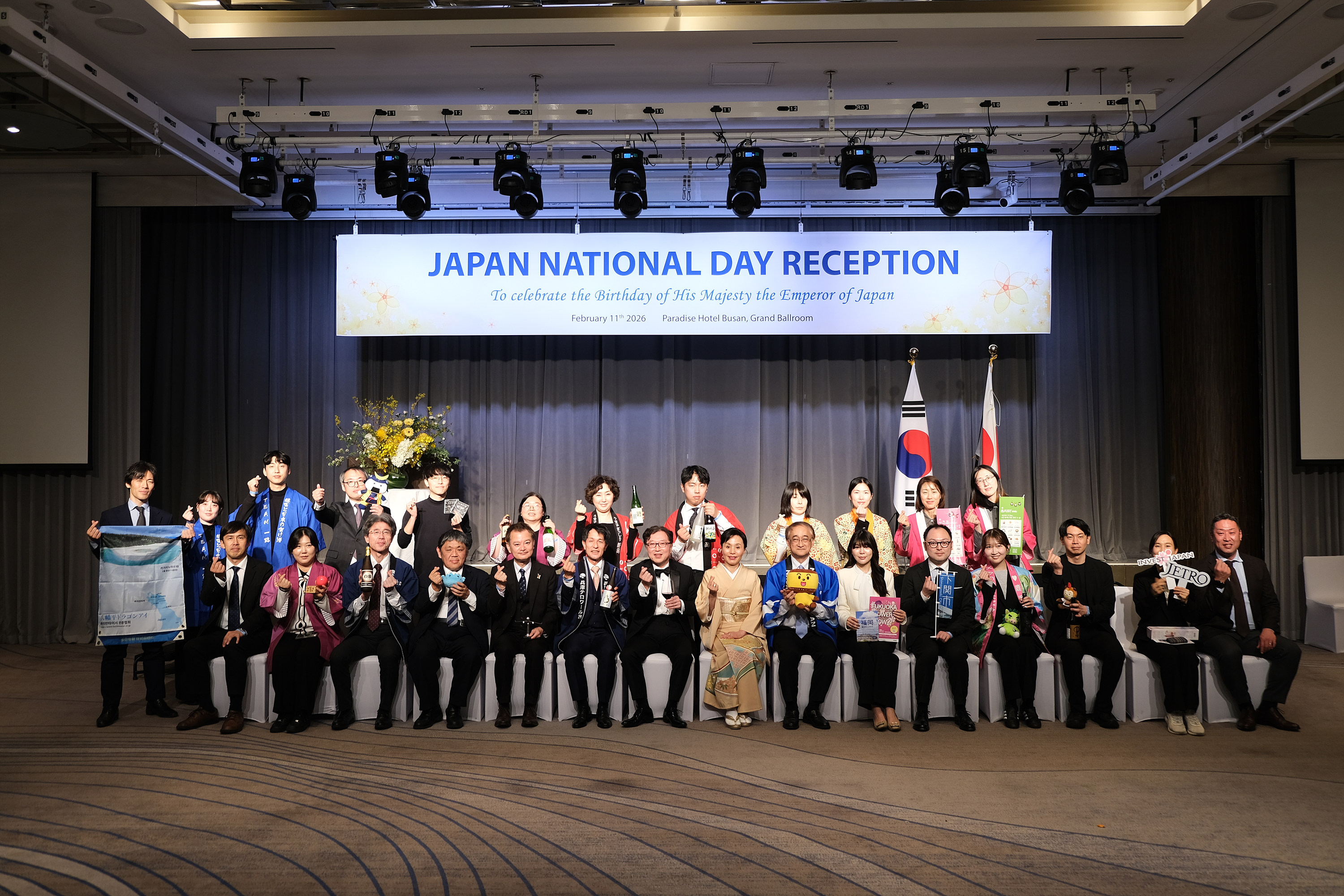 在大韓民国日本国大使館及び釜山日本国総領事館主催の「天皇誕生日祝賀レセプション」に参加し、所長補佐が派遣元自治体を代表して地方PRブースを出展を行い、韓国、日本及び大使館と交流のある各国の来賓に対して、地域の観光資源や特産品等の魅力を紹介しました。