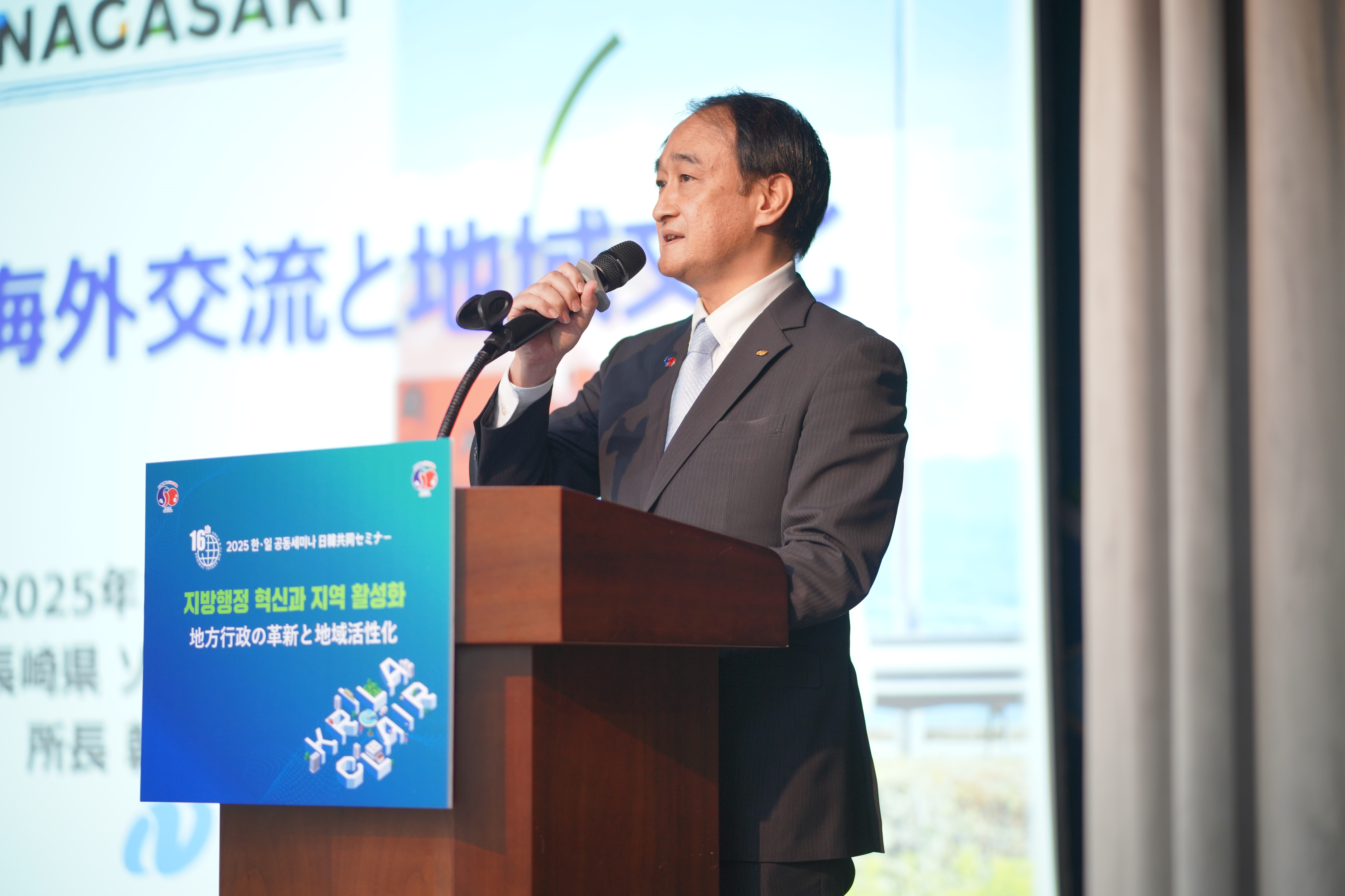 長崎県が古くから韓国や中国、西洋などと築いてきた交流の歴史と、そこから育まれた独自の文化、さらにそうした背景を生かして現在取り組んでいる地域の活性化や国際的な連携について紹介をいただきました。